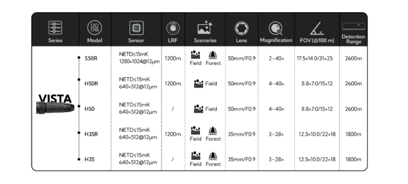 Vista’s Vision+ System, with its 2560×2560 AMOLED display and 8mm exit pupil diameter, offers an immersive observational experience. Equipped with a superior sensor and integrated LRF, Vista delivers top-tier performance in the industry. Its user-friendly design and improved battery solution make it the ideal companion for overcoming outdoor challenges.